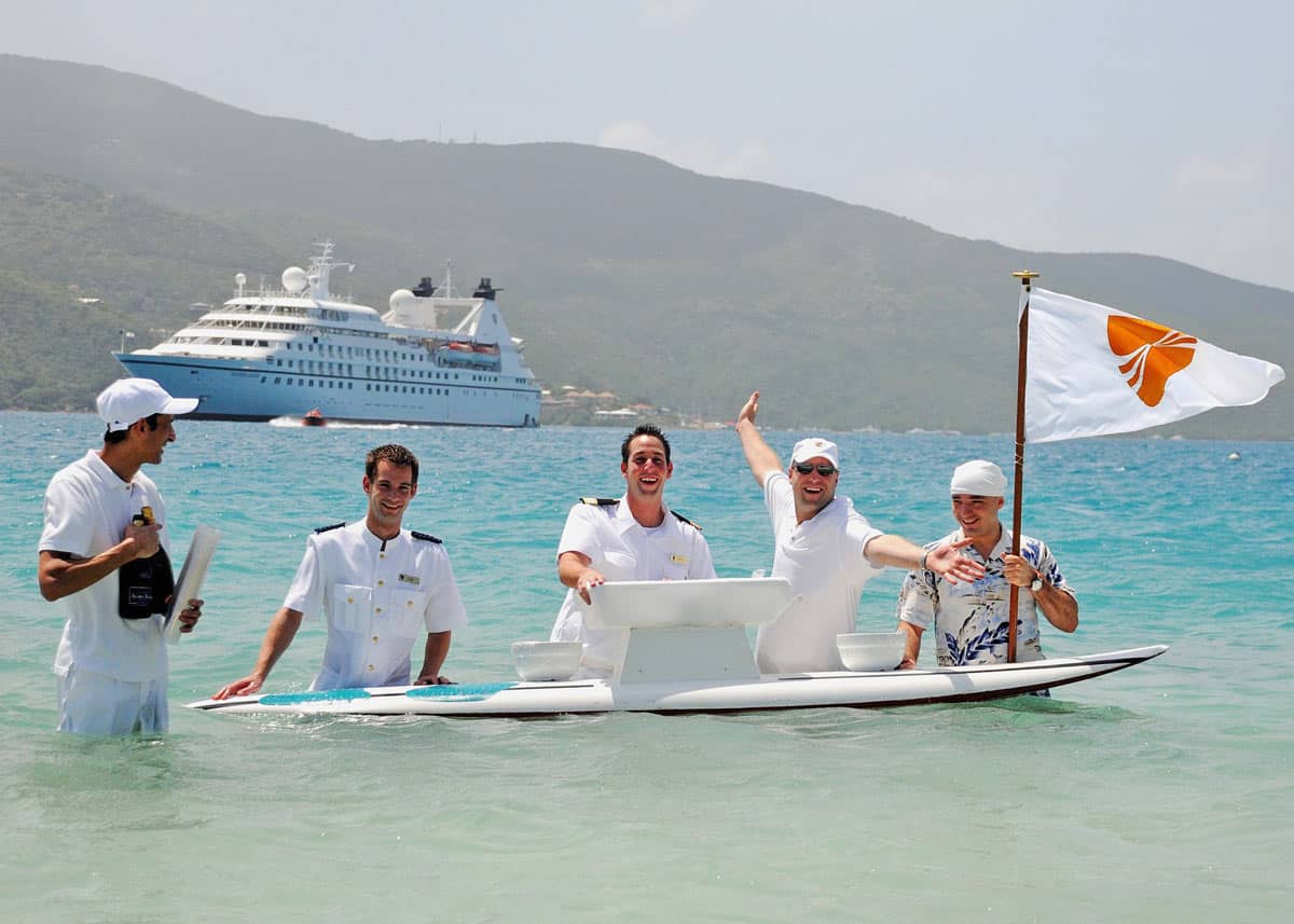 - Windstar Cruises – A small-ship leader (148 to 350 guests), Windstar Cruises has a yachty intimate feel (especially on their tall-sail ships). Their all-suite power yachts, like the Star Pride, offer extra space and comfort. We especially love the retractable watersports platform at the stern for kayaking, water skiing and swimming right from the ship!