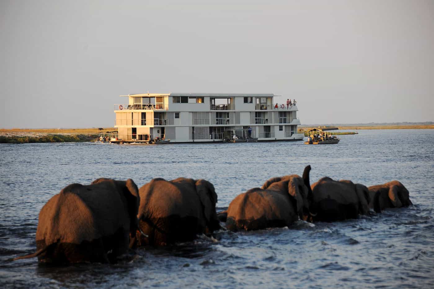 There’s nothing like a Chobe River safari on the Zambezi Queen. We woke to the sounds of snorting hippos and sipped sundowners on deck as elephants splashed in the shallows right beside us.