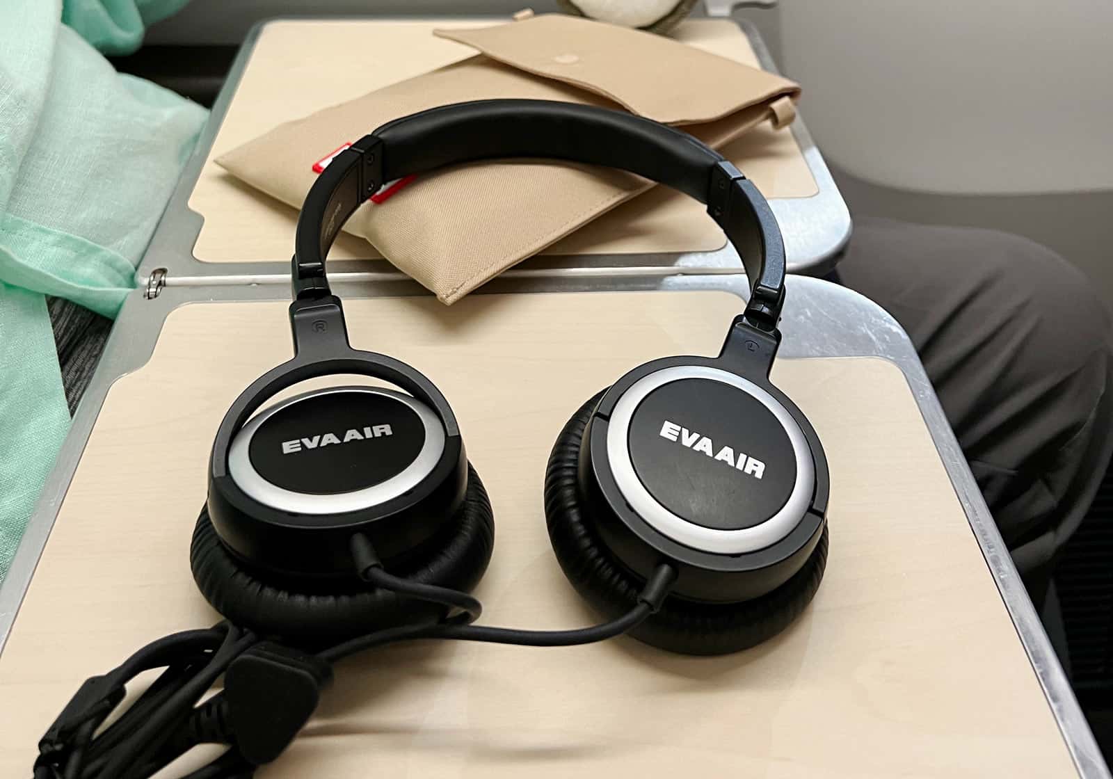 We got oatmeal-brown pouches on our flights to Taipei and olive-green ones on the returns.