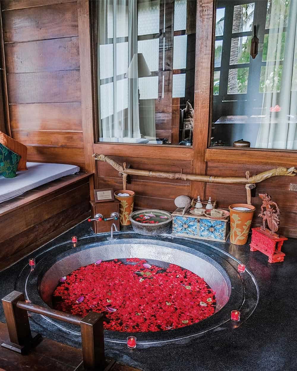 At the hotel, one crimson-themed guest villa (which you can visit when not occupied) is dedicated to the passionate love story between Belgian painter Adrien Le Mayeur (who came to Bali in 1932) and the model of his paintings, Balinese dancer Ni Polok.