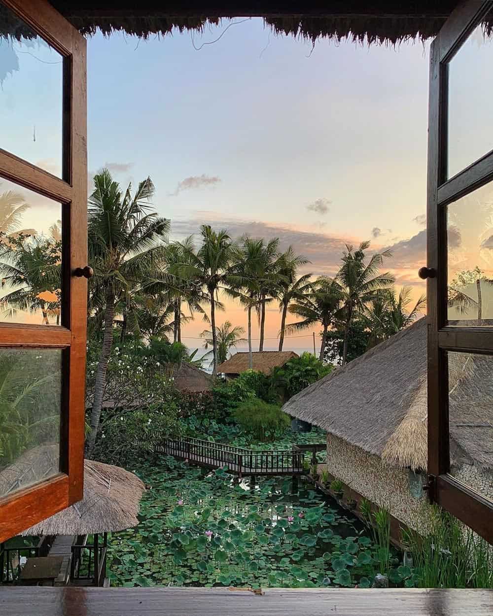 Thereโs a slightly wild feeling to the hotel’s location in the quieter Canggu beach area of Bali. (Canguu is a little further north of Seminyak, where luxury villa rentals are popular). Surfers flock to Canggu for its wave action.